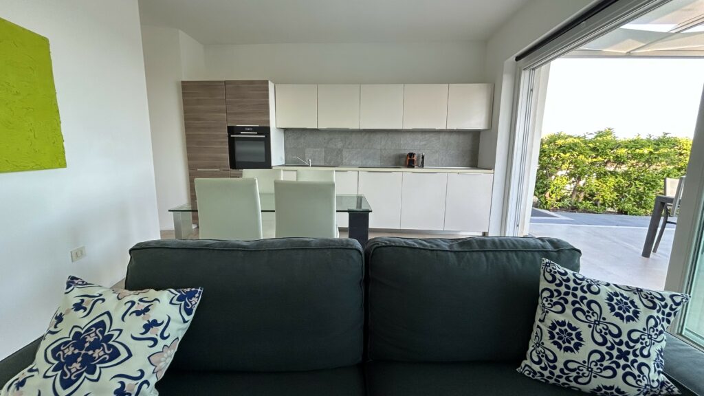 La Green Villa è una villa indipendente situata nella parte centrale del complesso Le Villette, una posizione equilibrata che consente un facile accesso agli spazi comuni mantenendo al tempo stesso privacy e tranquillità. La collocazione centrale la rende particolarmente comoda e funzionale, senza rinunciare ad una bellissima vista mare e alla qualità degli spazi esterni.